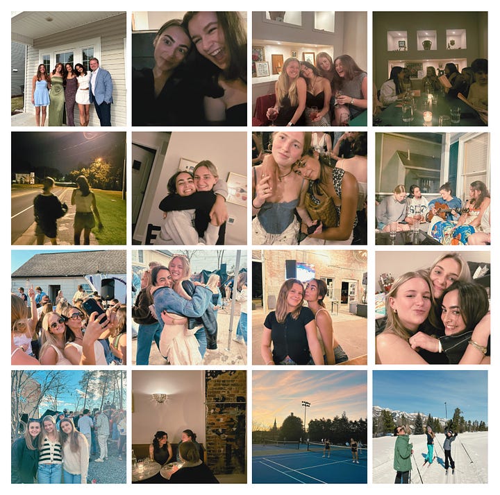 I spent its first day at home before returning south for the last semester of college. I can’t think of something I want more than to watch the semester back, reliving every moment. There were movie nights and snow days, concerts and nights in the yard by the fire. Sweaty afternoons on the pickleball courts, long mornings in coffee shops writing my thesis. The photo booth at Dive Bar, dancing at Burke St, cosmos at Sofa Bar. Visits from family and friends. Nights when our couch had not a seat to spare and walks through Reynolda. Hikes at Hanging Rock, concerts with friends. Cross country skiing and line dancing. Evenings with bands at the frats and chill nights with a guitar and some friends. Making dinner while the light came in through that side window, celebrating my birthday.
